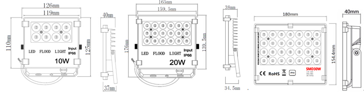 LED泛光燈---10W 20W 30W燈具尺寸: