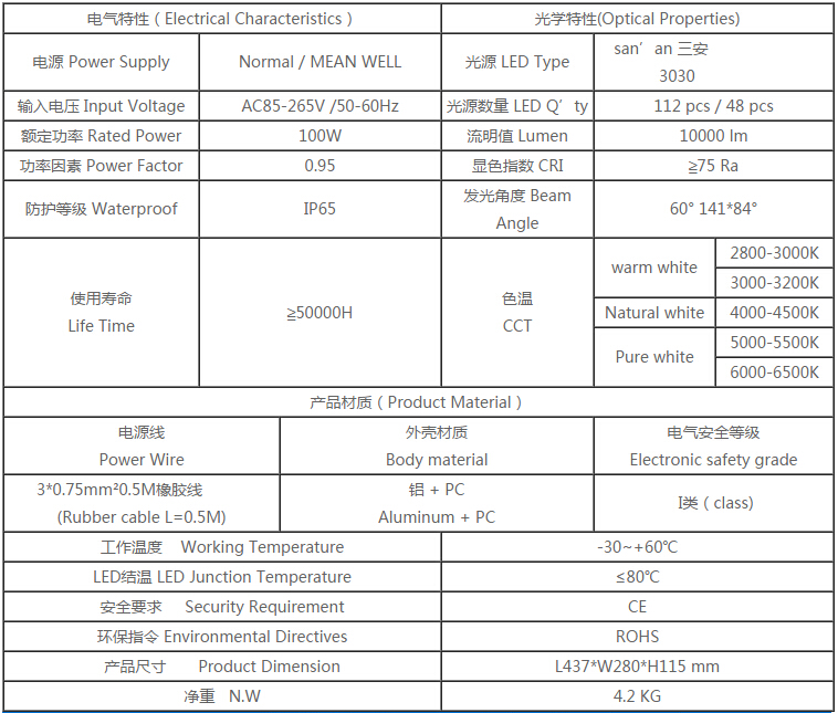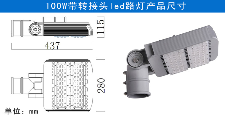產(chǎn)品特點: 1.燈臂角度可180°調(diào)節(jié),照射角度可隨意變化 2.采用高亮度LED芯片,亮度高、顯色性好 3.鋁加工而成,對流散熱設(shè)計,散熱性能好,保障光源使用壽命 4.抗17級風(fēng)力,無形變、松動等現(xiàn)象,異常牢固 5.防護(hù)等級IP65 適用范圍: 主干道路、高速公路、高架路、市區(qū)街道、天橋、人行道等道路照明,以及廣場、學(xué)校、住宅區(qū)、工業(yè)區(qū)、公園等其他需要戶外照明的場所。 產(chǎn)品規(guī)格(Product Spec):PL29L-100W LED路燈